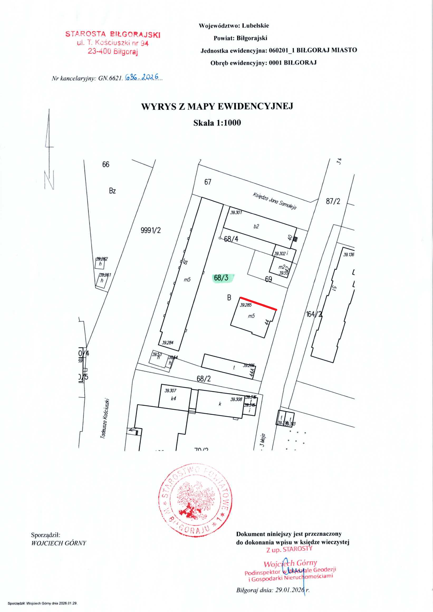 przy ul. 3 Maja 40, w terminie do dnia 04.03.2026 roku do godziny 1200 (decyduje